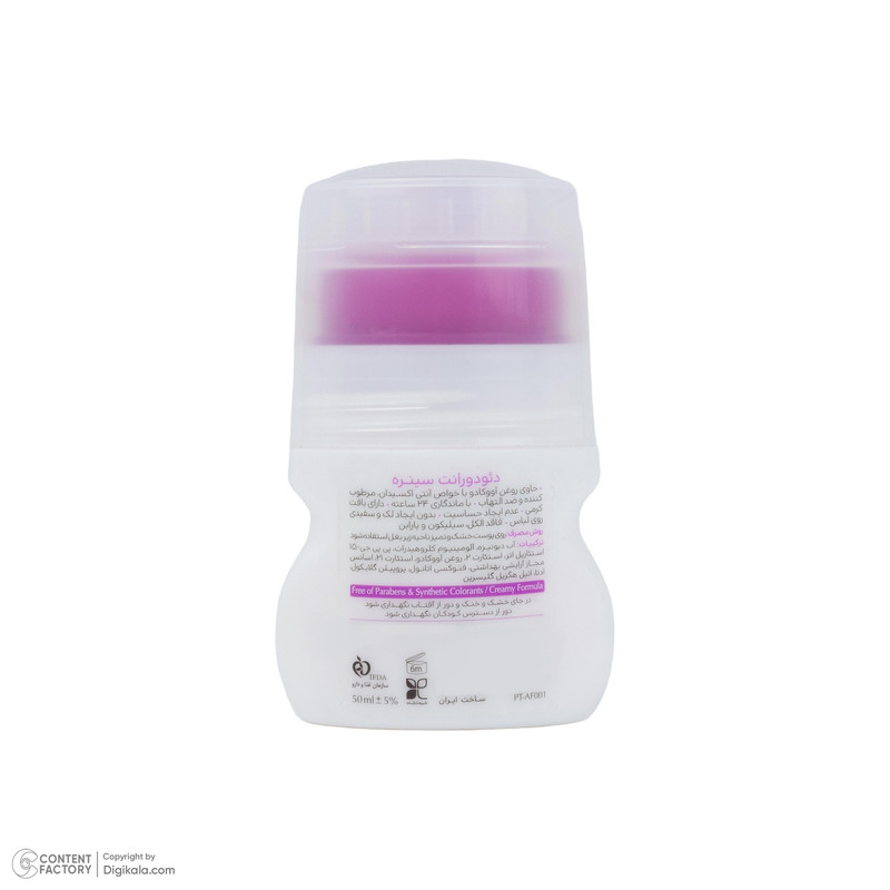 حاوی روغن آووکادو با خاصیت آنتیاکسیدانی/ مرطوبکننده و ضدالتهاب/ دارای بافت کرمی/ بدون ایجاد لک و سفیدی روی لباس/ فاقد الکل، سیلیکون و پارابن.