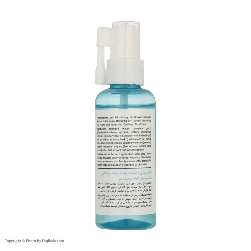 راهنمای استفاده: در هر بار استفاده تا 7 مرتبه بروی نواحی ریزش پوست سر اسپری کنید ، سپس با نوک انگشتان به آرامی ماساژ دهید .تونیک موی سر را یک یا دوبار در روز استفاده کنید .