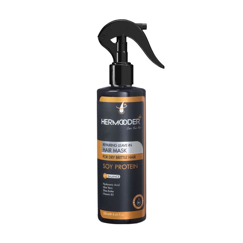 ماسک مو بدون آبکشی هرمودر مدل SOY PROTEIN مناسب برای موهای خشک و آسیب دیده حجم 250 میلی لیتر