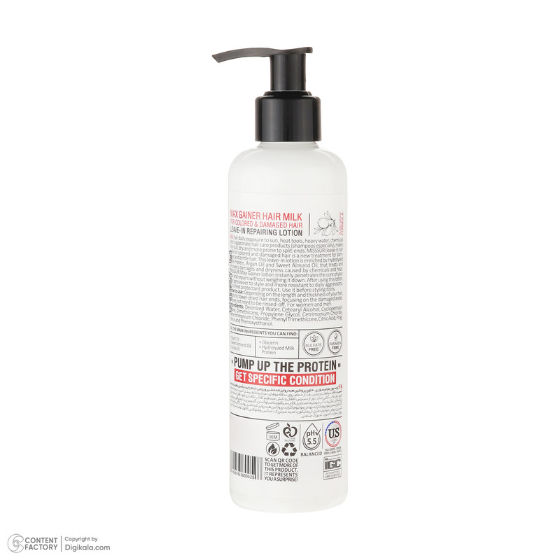 بعد از شستشو در حمام با شامپوی مناسب، آب اضافی موها را با حوله بگیرید و مقدار لازم از شیر مو را کف دست ریخته و روی ساقه موهای نمدار و نقاط آسیبدیده ماساژ دهید تا به خوبی جذب مو شود. این محصول نیاز به آبکشی ندارد.