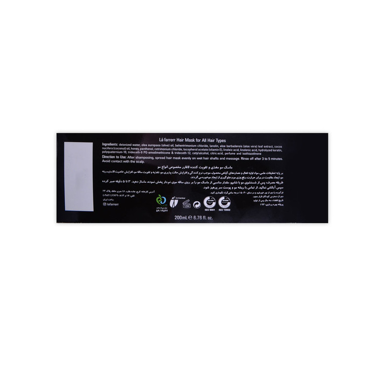پس از شستشوی مو با شامپو، مقدار مناسبی از ماسک مو را بر روی ساقه موی نم دار پخش نموده، ماساژ دهید و از تماس با ریشه مو و پوست سر پرهیز شود.