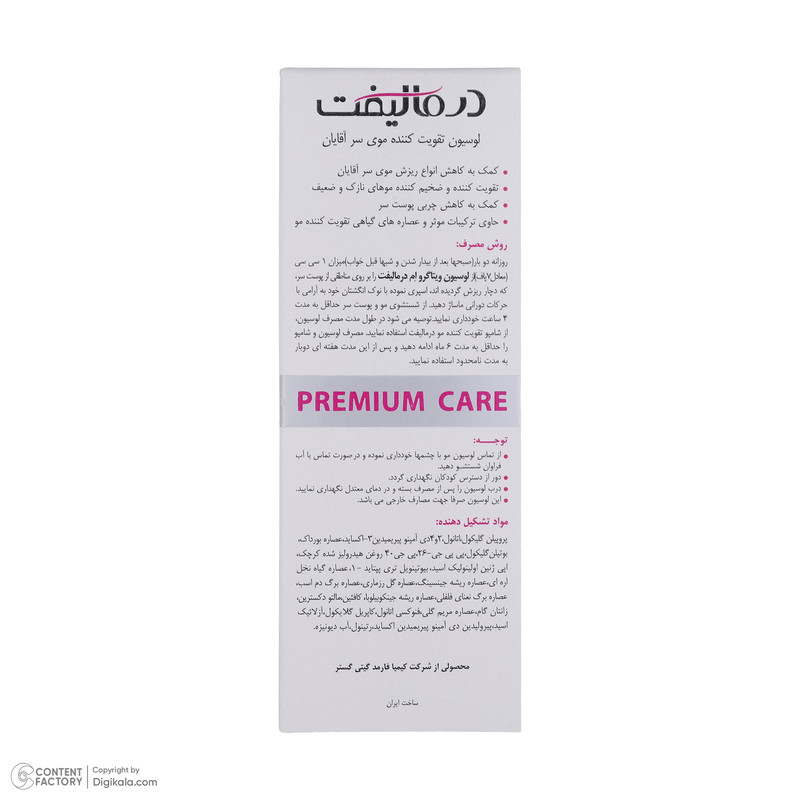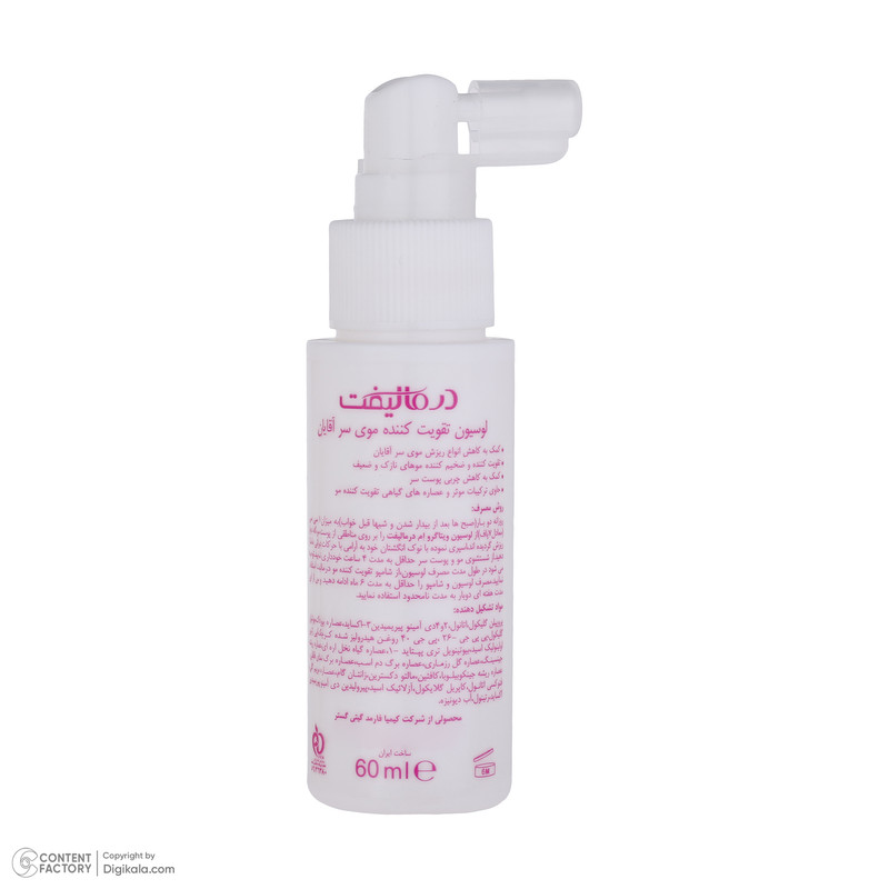 لوسیون تقویت کننده موی سر آقایان می باشد که کمک به کاهش انواع ریزش موی سر آقایان و تقویت کننده و ضخیم کننده موهای نازک و ضعیف و کمک به کاهش چربی پوست سر می کند و حاوی ترکیبات موثر و عصاره های گیاهی تقویت کننده مو می باشد.