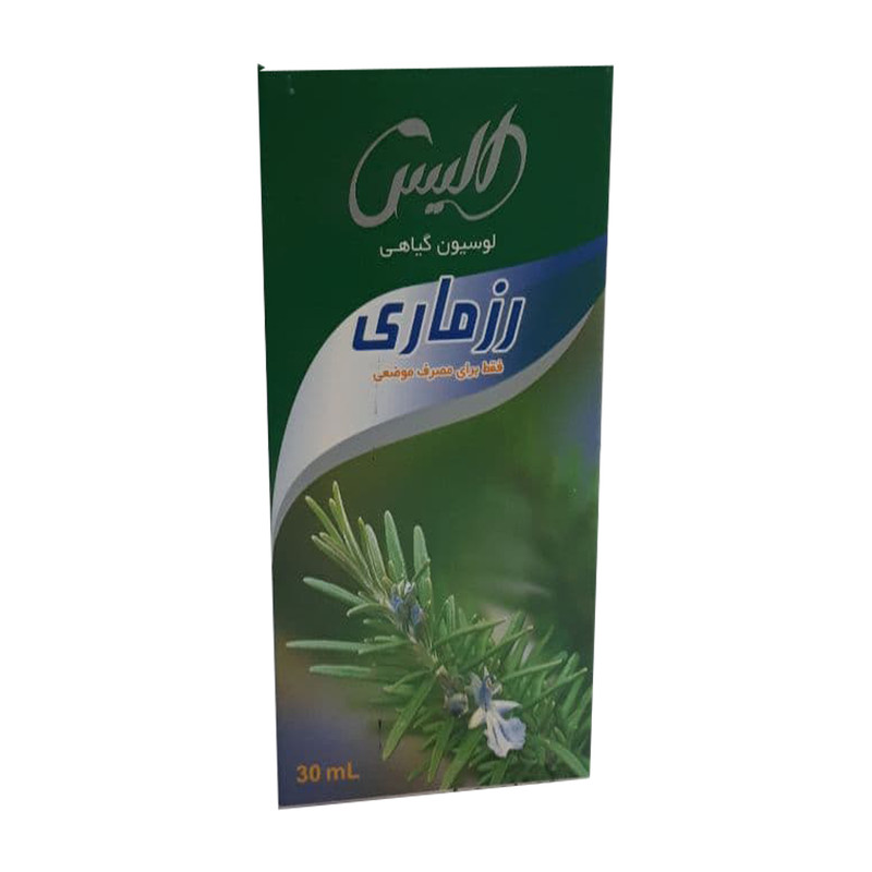لوسین رزماری الیس گیاهی بوده ومصرف موضعی دارد، یک عدد قطره چکان همراه لوسیون در جعبه است.