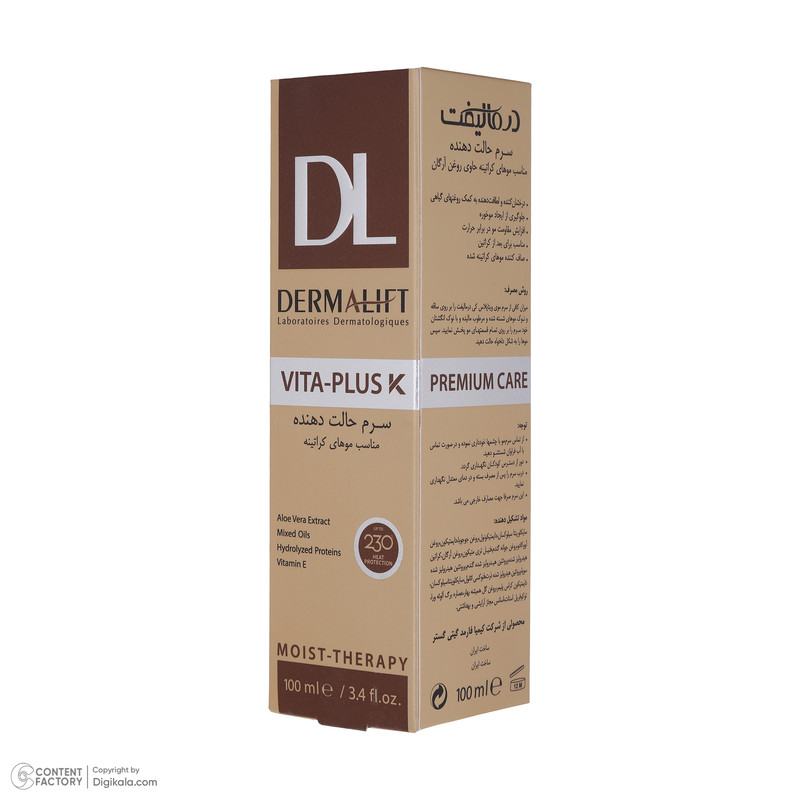 سرم مو درمالیفت مدل VITA PLUSK مناسب برای موهای کراتینه حجم 100 میلی لیتر