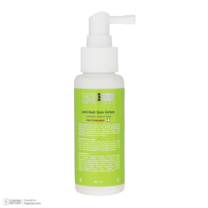 6 پاف از اسپری را روزی 2بار بر روی کف سر در مناطقی که دچار ریزش شده، اسپری کنید. برای تاثیر بهتر توسط حرکات دورانی با نوک نرم انگشتان دست پوست سر را ماساژ دهید. پس از مصرف از شستشو خودداری نمایید.