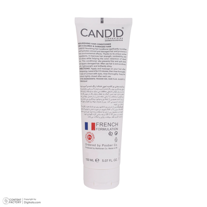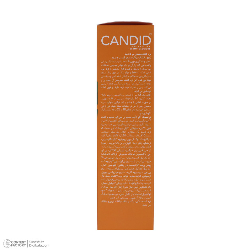نرم کننده مغذی مو کاندید، از ایجاد وز و موخوره پیشگیری مینماید و موی آسیب دیده را ترمیم میکند. پس از مصرف، موها نرم، لطیف و فوقالعاده درخشان میشوند. نرم کننده مغذی مو CANDID، حاوی ترکیبات رطوبت رسان قوی بوده که رطوبت مورد نیاز موها را تامین کرده و مانع از خشکی و شکنندگی موها میگردد. موها را نرم و لطیف کرده و حالتی ابریشم گون به تارهای مو میبخشد.نرم کننده کاندید حاوی ترکیبات تغذیه کننده گیاهی میباشد که به تقویت و بهبود ضخامت و استحکام تارهای مو کمک بسیار زیادی مینماید. این محصول درخشان کننده و براق کننده موها میباشد. از وزی و گره خوردگی آنها جلوگیری میکند و به بهبود شانه پذیری موها نیز کمک مینماید.نرم کننده مغذی کاندید برای افرادی که موهای خشک، آسیب دیده و یا رنگ شده دارند نیز مناسب میباشد. این نرم کننده همچنین نقش موثری در بهبود و افزایش دوام و تثبیت رنگ موها دارد. در فرمولاسیون این محصول از پارابن و سولفات استفاده نشده است و هیچ گونه آسیبی به موها نمیرساند. نرم کننده مغذی کاندید حجم دهنده به موها میباشد. این محصول خاصیت ارتجاعی مو را بهبود بخشیده و به افزایش حالت پذیری موها نیز کمک مینماید.