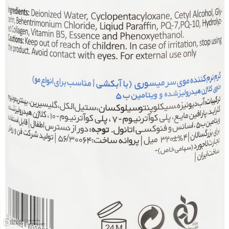 نرمکننده مو میسوری مدل Shine & Moisture حجم 320 میلیلیتر