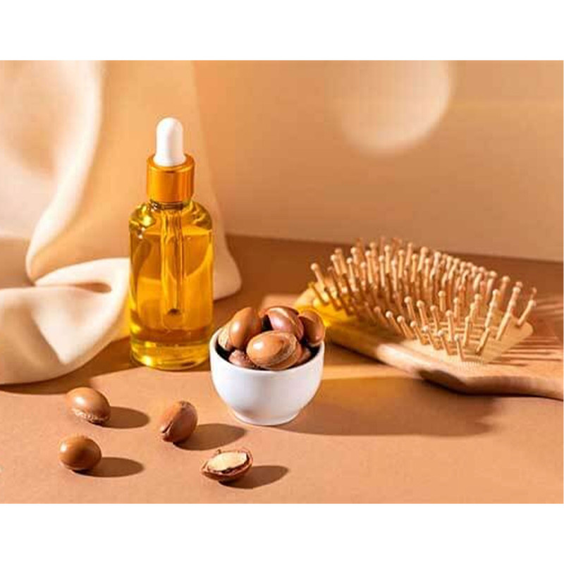 همچنین استفاده از روغن آرگان روی ناخنها و پوست اطراف آن، موجب نرم شدن ناخن، افزایش آن و جلوگیری از شکنندگی ناخنها و بهبود کیفیت پوست اطراف آن و جلوگیری از ورقه ورقه شدن پوست میشود. روغن آرگان با ایجاد یک لایه پوششی نرم کننده روی مو، موجب انعطاف پذیری و شانه پذیری بهتر موها شده و از الکتریسیته ساکن، شکنندگی و گره خوردن موها جلوگیری میکند. همچنین به دلیل داشتن آنتی اکسیدان ها موجب دوام بهتر رنگ موها میشود. بنابراین میتوانید چند قطره روغن آرگان را به رنگ موی خود اضافه کنید و یا بهطور روزانه موهای خود را با روغن آرگان ماساژ دهید.