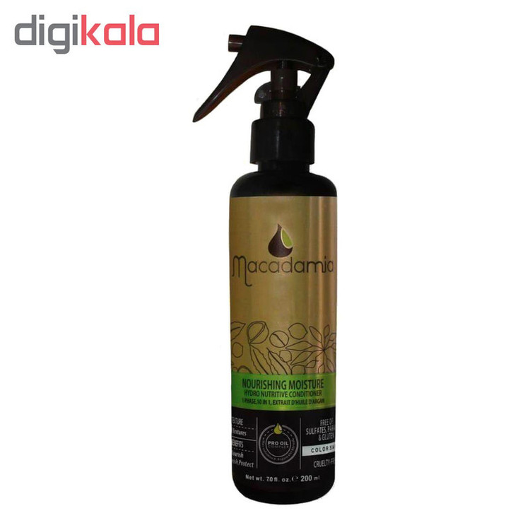 اسپری مو ۱۰ کاره ماکادامیا مدل نوریشینگ بدون آبکشی می باشد.مناسب برای موهای بسیار آسیب دیده وخشک است.حاوی روغن ماکادامیا و آرگان می باشد.فرمولاسیون اسپری ۱۰ کاره ماکادامیا به نحوی است که حالت پذیری مو ها را بیشتر می کند و نیز از مو در برابر اشعه های مضر نور حورشید محافظت می نماید.باعث ایجاد شادابی ،نرمی و لطافت موها می شود .موجب آبرسانی عمیق به ساقه موها می شود.