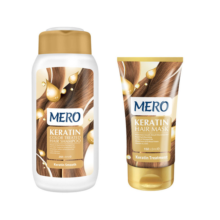 ماسک مو مرو مدل Keratin حجم 150 میلی لیتر به همراه شامپو مو مرو مدل Keratin حجم 250 میلی لیتر