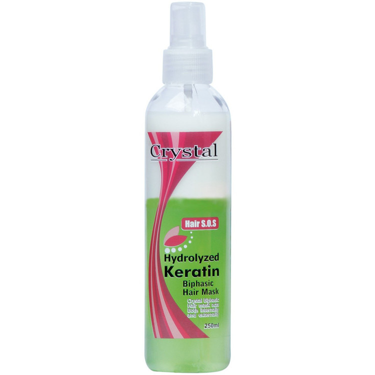 ماسک موی برند «کریستال» (Crystal) دوفاز است و حجمی حدود 250 میلیلیتر دارد. مدل (Hydrolyzed Keratin) از نوع اسپری دوفاز است و پس از استفاده نیازی به آبکشی موها نیست زیرا جذب تارهای مو میشود و تاثیر بهتری میگذارد. ماسک موی کریستال کراتینه و براقکننده است که برای استفادهی موهای خشک، آسیبدیده و رنگشده است. قدرت احیاکنندگی بسیار بالای ماسک موی کریستال منجربه ترمیم سریعتر و بهتر موهای آسیبدیدهی شما خواهد شد. کریستال دارای دو فاز است که هر دو فاز آبرسان، مغذی و سیلیکونی هستند. ماسک موی دوفاز کریستال علاوهبر درخشانکردن موها، به راحتتر شانه شدن موها هم کمک فراوانی میکند که لطافت و نرمی موها را هم بهدنبال دارد. با استفاده از ماسک موی کریستال، گرهخوردگی موها ازبین میبرد و تارهای مو را صاف و بدون گره میکند. مواد پروتئینهی موجود در ماسک موی کریستال موها را تغذیه میکند و رطوبت موها را تامین میکند. اگر میخواهید راحتتر و بهتر موهایتان سشوار بکشید، اتو کنید و یا حالت دهید استفاده از ماسک موی کریستال را بهشما پیشنهاد میدهیم. ماسک موی کریستال بهدلیل مدل اسپریای که دارد راحتتر قابل استفاده کردن است و حالت محلول آن باعث میشود بهتر روی موی بنشیند و تاثیر بهتری روی موها بگذارد.