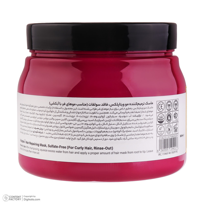 ماسک مو ویتاپلکس مدل CURL CARE مناسب برای موهای فر حجم 500 میلیلیتر