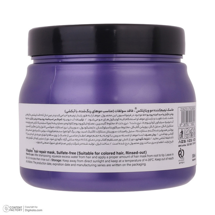 نوع ماسک و مراقبت مو: تقویت کننده , تثبیت کننده رنگ مو , ترمیم کننده