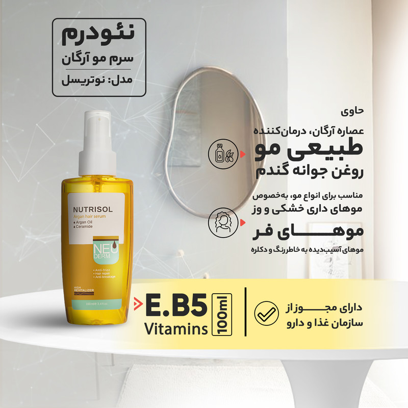 سرم مو آرگان نئودرم مدل نوتریسل مناسب انواع مو حجم 100 میلی لیتر