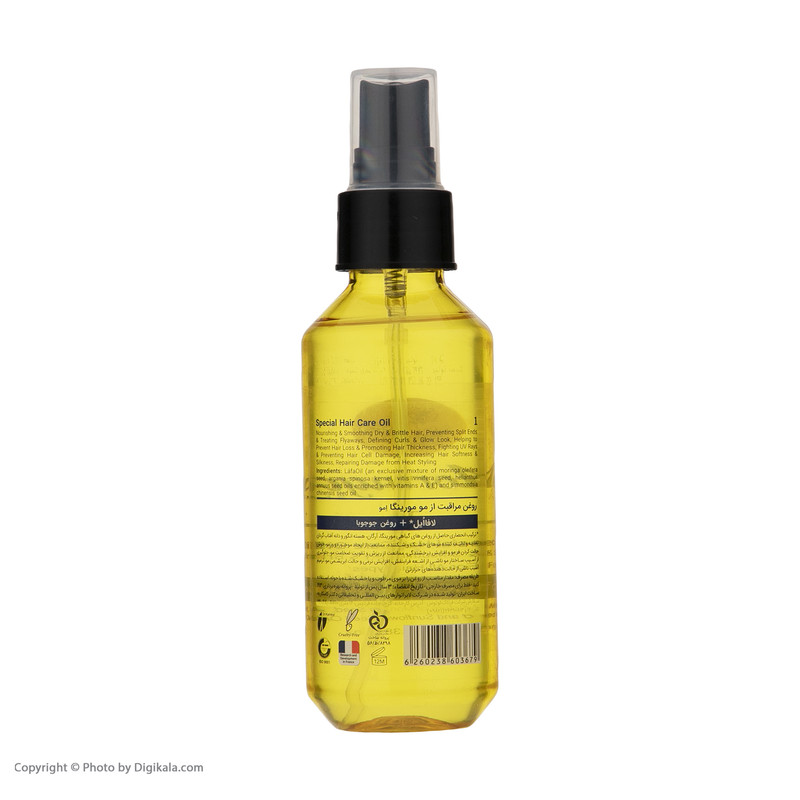 LáfaOil (لافااُیل: ترکیبی انحصاری شامل روغنهای گیاهی مورینگا، آرگان، هسته انگور و دانه آفتابگردان وویتامین A و E) + روغن دانه جوجوبا این محصول، عاری از هر گونه ماده نگهدارنده است.