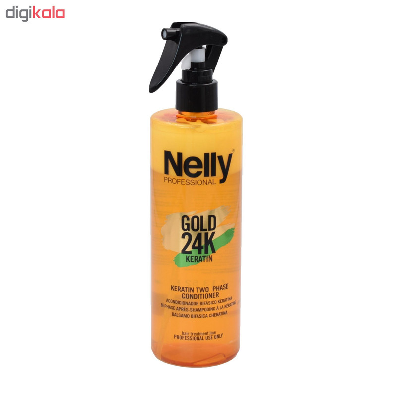 اسپری دوفاز احیا و ترمیم کننده مو کراتین گلد نلی یک حالت دهنده دوفاز است که به خوبی به موها حالت داده، شانه کردن موهای مرطوب و خیس را راحت تر می سازد، آبرسانی مو را بهبود می بخشد و آن را درخشان و زیبا می سازد. اسپری دوفاز احیا و ترمیم کننده مو کراتین گلد نلی با کمک کراتین و روغن آرگان موجود در ترکیب خود، موها را تغذیه کرده، موهای خشک و ضعیف را احیا و بازسازی می کند و با تقویت و مقاوم ساختن موها، از آن ها محافظت کرده و به حفظ سلامت آن ها کمک می کند. اسپری دو فاز گلد نلی با داشتن دو فاز شفاف و غیر شفاف ، علاوه بر تامین مواد مغذی و ترمیم کننده ، به دلیل داشتن کمپلکس آبرسان ، موها را نرم و با طراوت نموده و در پی استفاده از آن ، موها نرم و لطیف گشته و رنگ مو جلوه ای بسیار شفاف و درخشان خواهد داشت. محصول را تکان دهید تا دوفاز آن با هم مخلوط شود.روی موهای تمیز و مرطوب اسپری نمایید. سری محصولات گلد نلی حاوی ذرات ریز طلای ۲۴ عیار بوده که ضمن جلوگیری از فرسودگی مو، موجب درخشندگی فوق العاده خیره کننده موها می شود. فرمولاسیون نوآورانه این سری از محصولات با داشتن ذرات طلا از یک سو و با داشتن قوی ترین مواد طبیعی و تغذیه کننده بافت مو از سوی دیگر با تامین سلامت موها، به صورت قابل توجهی موجب احیاء و طراوت و درخشندگی آنها میشود.