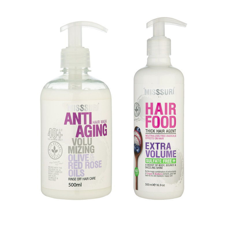 ماسک مو میسوری مدل ضد پیری مناسب موهای خشک حجم 500 میلی لیتر به همراه ماسک مو میسوری مدل حجم دهنده مناسب موهای خشک حجم 500 میلی لیتر