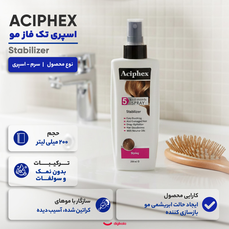 پس از حمام، مقدار مناسبی از اسپری را روی ساقه موهای مرطوب یا خشک اسپری کرده و سپس به آرامی ماساژ دهید تا جذب شود.
