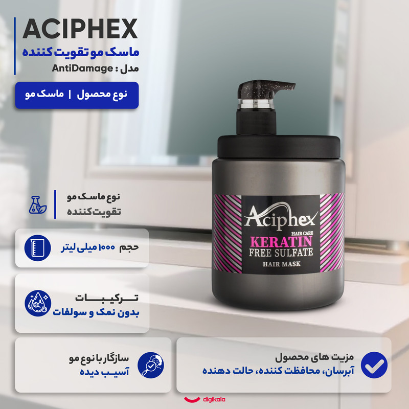 ماسک مو تقویت کننده اسیفکس مدل کراتین مناسب برای موهای آسیب دیده حجم 1000 میلی لیتر