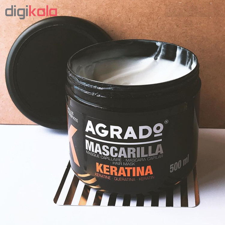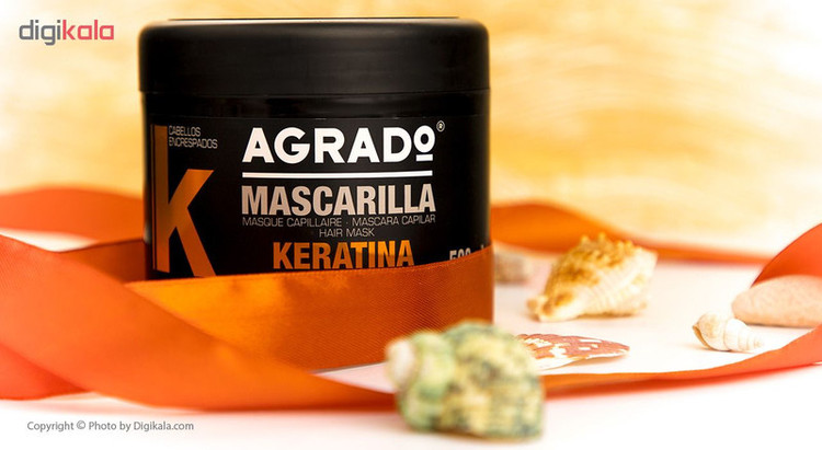 ماسک مو کراتینه آگرادو محصولی از کمپانی اسپانیایی است که با عملکرد چندگانه خود نیاز مصرف کنندگان را تامین میکند. ماسک مو کراتینه آگرادو ضمن ترمیم کوتیکولهای مو و فیبرهای ساقه مو، باعث افزایش استحکام و استقامت ریشه مو شده و خشکی و شکنندگی ساقه مو را از بین میبرد. این محصول حاوی کراتین هیدرولیز شده است که با تقویت ساقه های مو، باعث صاف و یک دست شدن آن ها میشود و ضمن براق و درخشان نمودن موها، باعث بهبود شانه پذیری و حالت دهی موها میشود. ماسک مو کراتینه آگرادو محصول در بسته بندی 500 میلی لیتری به بازار عرضه شده است. شامپو مو کراتینه آگرادو با فرمولاسیون ویژه به منظور ترمیم بافت مویرگها و با خاصیت آببندی کردن کراتین، موهای شما را تقویت کرده و موجب نرمی و حالت پذیری بهتر مو میگردد. شامپو مو کراتینه آگرادو به بافت مویرگها نفوذ کرده و با اثر طولانی مدت مانع از خشکی و شکننده شدن موی شما و نیز موجب براقی و درخشش مو میگردد. شامپو مو کراتینه آگرادو با دارا بودن کراتین هیدرولیز شده، مورد نیاز برای موهای آسیب دیده و موهای رنگ شده و دکلره شده که کراتین طبیعی خود را از دست داده اند است و علاوه بر اثر تقویتی فوق العاده ی خود از وز شدن موها نیز جلوگیری مینماید.
