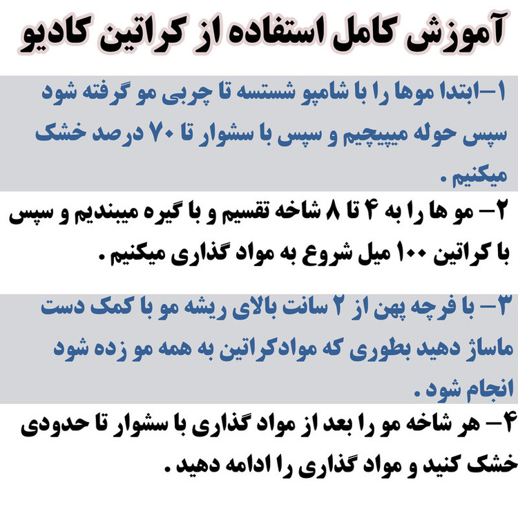 کارایی محصول: ترمیمکننده , جلوگیری از وز شدن مو , صاف کننده , ماندگاری بالا , نرمکننده , نگهدارنده