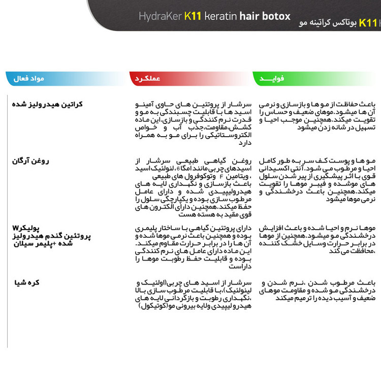 روغن آرگان , کراتین هیدرولیز شده , پروتیین گندم , روغن دانه شیا و لانولین