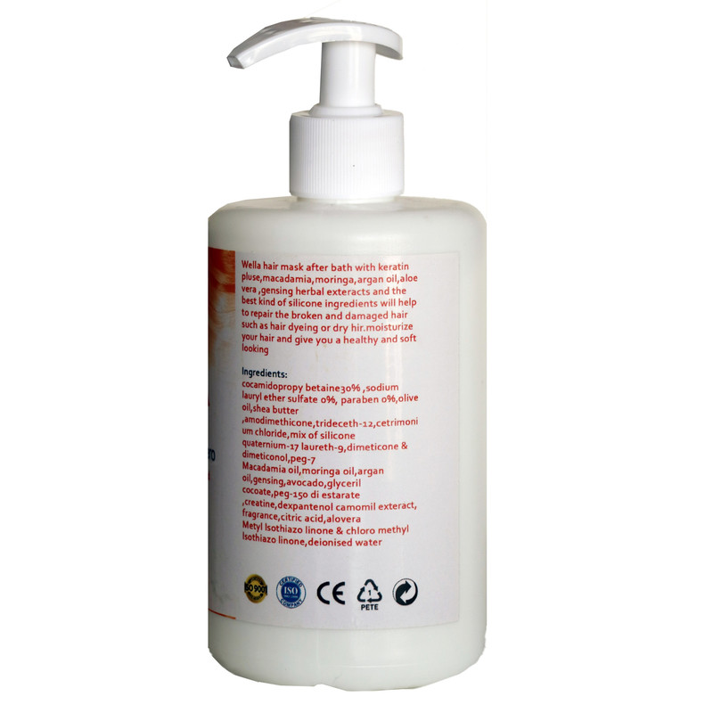 بعد ازحمام استفاده شود نیازی به شست شو ندارد.مناسب موهای کراتین شده میباشد