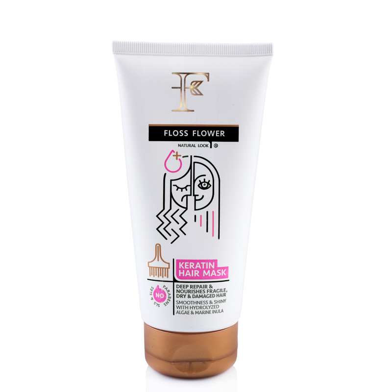 ماسک فلوس فلاور حاوی کراتین هیدرولیزه شده ، جلبک دریایی هیدرولیزه شده ، اینولای دریایی و خزه دریایی می باشد که علاوه بر جایگزین کراتین از دست رفته مو باعث کراتینه کردن می شود بعلت دارا بودن اسیدهای آمینه در این ترکیبات که حاوی مواد معدنی و ویتامین های فراوان می باشد باعث آبرسانی و کلاژن سازی و پروتئین سازی مو میگردد در نتیجه با تقویت فولیکول های مو باعث کاهش ریزش مو می شود همچنین این ماسک فاقد هرگونه ترکیبات مضر مانند سولفات ها و پارابن ها می باشد که باعث درخشانتر و محکمتر شدن موها می گردد.