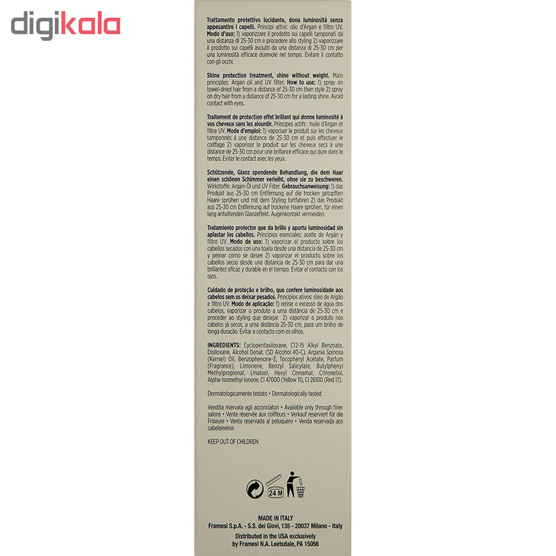 روغن آرگان فرامسی موجب بازسازی و درخشش موها می شود. بافت فوق العاده سبک روغن آرگان فرامسی، آن را برای انواع مو حتی موهای طریف و نازک مناسب کرده است. بدون احساس سنگینی و چربی در مو، باعث لختی مو می شود و به موهای شکننده و ظریف حجم می دهد. این محصول دارای فیلترهای محافظت کننده ی مو در برابر آسیب های محیطی از جمله اشعه ی مضر UV است. برای مراقبت بهتر، تغذیه ی عمیق مو و نتیجه ی چشم گیر تر، بهترین انتخاب روغن آرگان است. روغن سنتی و کم یاب مراکش که امروز در درمان و مراقبت ساقه ی مو بسیار موثر است.