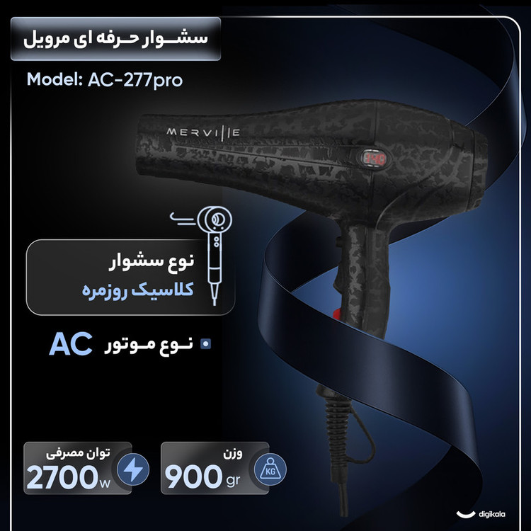 برای تمام آرایشگران، داشتن سشواری که بتواند موهای مشتریان را در کمترین زمان خشک یا حالتدهی کند اهمیت زیادی دارد. سشوار AC-277pro بهراحتی از پس این نیاز برمیآید. این مدل با موتور قدرتمند ۲۷۰۰ وات کار میکند که در مقایسه با بسیاری از سشوارهای دیگر توان خروجی بسیار بالاتری دارد. هرچه قدرت موتور بیشتر باشد، شدت جریان هوا افزایش پیدا میکند و در نتیجه موها در مدت زمان کوتاهتری خشک میشوند. یکی از ویژگیهای کاربردی این سشوار، تولید هوای سرد است؛ قابلیتی که به تثبیت حالت مو کمک میکند و لطافت و درخشندگی تارهای مو را افزایش میدهد. این امکان با فشردن دکمهای کوچک که زیر خروجی هوا قرار دارد فعال میشود. موتور AC استفادهشده در این دستگاه نسبت به موتورهای DC سرعت و قدرت بیشتری دارد و همین موضوع باعث عملکرد سریعتر هنگام خشککردن مو میشود. علاوهبراین، موتور AC برای استفاده طولانیمدت طراحی شده و میتواند مدت بیشتری بهصورت ممتد روشن بماند؛ ویژگیای مهم برای مصارف حرفهای مانند آرایشگاهها. از دیگر امکانات این سشوار میتوان به تنظیم سرعت و دمای هوای خروجی اشاره کرد که به خشککردن، حالتدهی و صافکردن مو سرعت بیشتری میدهد. وجود حلقه آویختن نیز استفاده و نگهداری دستگاه را آسانتر کرده است. در مجموع، سشوار AC-277pro با موتور ۲۷۰۰ وات، قابلیت تولید هوای سرد و تنظیم سرعت و دما، گزینهای قدرتمند و مناسب برای استفاده حرفهای به شمار میآید.