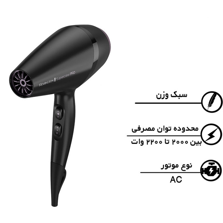 سایر مشخصات: سشوار سالنی سبک و جمع و جور و خشک کردن مو به صورت یکنواخت که آسیبی به مو نخواهد رسید. سرعت پرتاپ باد 110km