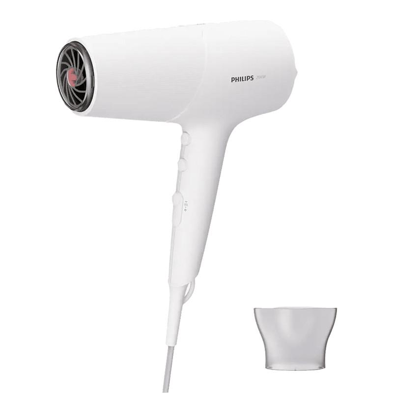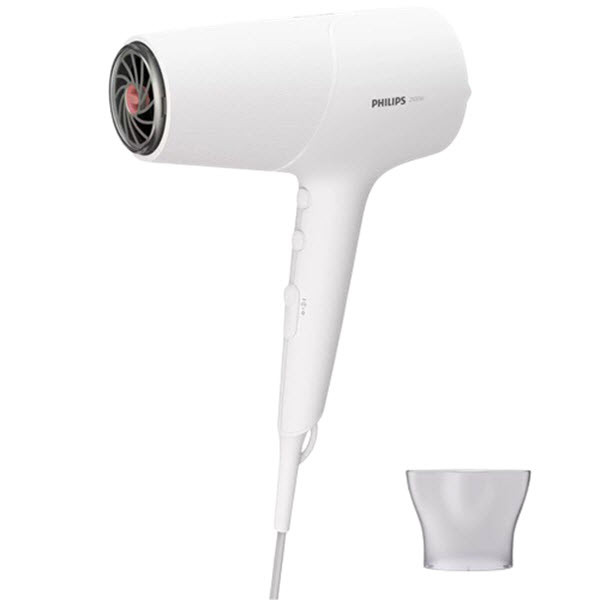 سشوار مدل BHD500 فیلیپس یک سشوار بسیار پرقدرت و حرفه ای بوده که با استفاده از یک موتور قدرتمند 2100 وات از نوع DC توانایی ایجاد جریان باد گرم و سرد را دارد. این جریان هوای عالی علاوه بر اینکه موجب می شود تا موها 20% سریع تر از حالت عادی خشک شوند، به حالت گیری بهتر آن ها نیز کمک می کند.سشوار BHD500 دارای 6 حالت تنظیم دما و سرعت می باشد. بنابراین شما می توانید به راحتی تنظیمات دستگاه خود را شخصی سازی نمایید و با توجه به جنس و حجم موها و همچنین مدل موی مد نظرتان ، بهترین حالت را انتخاب کنید.این سشوار مجهز به تکنولوژی ThermoShield بوده تا از موهای شما در برابر آسیب محافظت کند. در این تکنولوژی دمای بالا توسط یک سنسور حرارتی تشخیص داده شده و بدین شکل از گرم شدن بیش از اندازه سشوار و آسیب دیدن موها جلوگیری می شود. سشوار BHD500 فیلیپس مجهز به تکنولوژی تولید یون است. در این فناوری با تولید یون های منفی ، الکتریسیته ساکن ایجاد شده بر روی موها از بین رفته و علاوه بر جلوگیری از وز شدگی به درخشندگی بیشتر موها نیز کمک می شود. با هر بار استفاده از این سشوار به راحتی تا 40 میلیون یون منتشر شده تا براقیت و زیبایی هر چه بیشتر موها تضمین گردد. این مدل مجهز به یک سری متمرکز کننده هوا با عرض دهانه 14 میلی متر نیز هست و به همین جهت این امکان را دارد تا باد را با فشار بیشتری به بیرون پرتاب نماید. این ویژگی به حالت دهی بهتر و سریع تر موها کمک زیادی خواهد کرد.