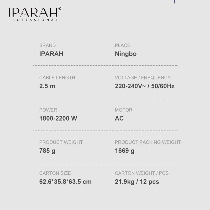 سایر مشخصات: دارای حلقه آویز-قابلیت تنظیم سرعت و دما-دارای تکنولوژی سرومیک و یون-
