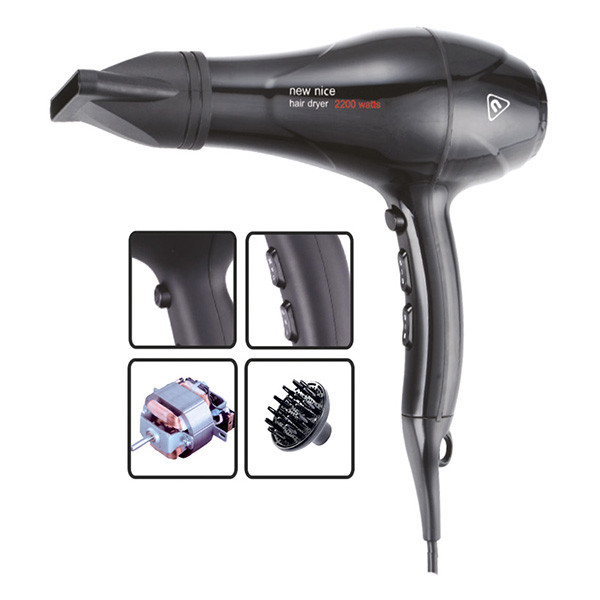 سشوار فوق حرفه ای مدل NW-1021 یکی از محصولات جدید شرکت نیونایس می باشد . این سشوار در مدل حرفه ای و یون ساز ساخته شده است . از مشخصات کلی این سشوار حرفه ای می توان به توان ۲۲۰۰ وات آن اشاره کرد . همچنین این سشوار حرفه ای دارای سه درجه تنظیم دما و سه درجه تغییرات سرعت هوا می باشد . دارای سیستم خنک کننده نیز می باشد .