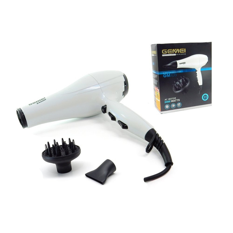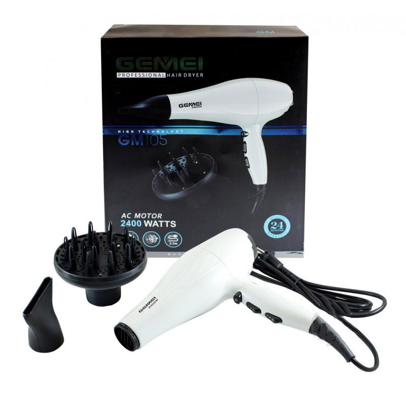 مدل «GM-105» از سشوارهای خوشساخت شرکت «جیمی» (Gemei) است که از موتور AC و توان 2400 وات بهره میبرد. این مدل برای کاربری خانگی و حرفهای گزینه مناسب و ایدهآلی محسوب میشود. ممکن است برای حالتدادن به موها مجبور باشید مدت طولانی موها را سشوار کنید و این میتواند آزار دهنده باشد یا حتی موجب سوختگی سر و گردن شود، در این وضعیت میتوان از حالت باد سرد کمک گرفت. این سشوار همچنین دارای دو حالت باد و گرما است. درضمن برای راحتتر شدن حالت دادن به مو یک عدد متمرکزکننده در اقلام همراه کالا دیده میشود. کابل 2.5 متری، وزن نسبتا کم و طراحی ارگونومیک کار کردن با این سشوار را سادهتر کرده است. سشوار جیمی مدل GM105به یک حلقه آویختن مجهز شده است تا در مواقعی که از آن استفاده نمیکنید، از نظمدهنده آویزان کنید. سشوار GM105از مدلهای مقرونبهصرفه شرکت جیمی است که فناوری تولید یون نیز دارد.