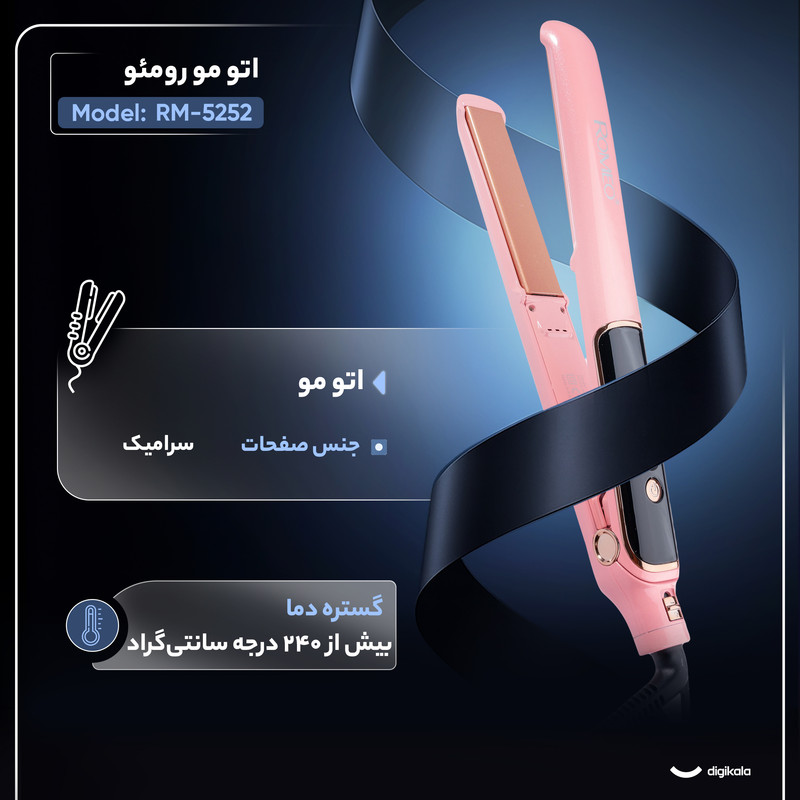 زمان رسیدن به حداکثر دما 90 ثانیه - دارای دکمه برای قفل کردن صفحه اتومو - دارای دکمه روشن و خاموش و کم و زیاد کردن دما