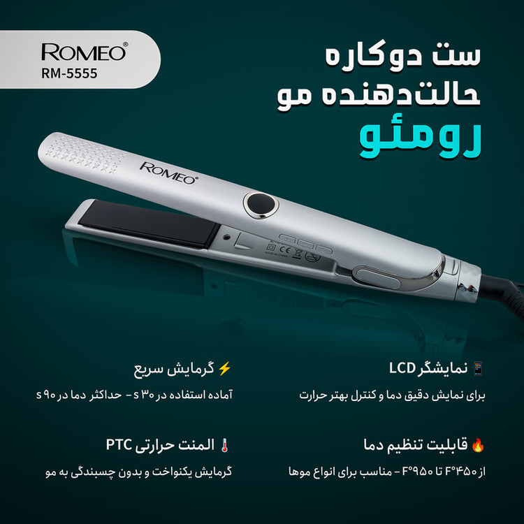 صفحه نمایش دما , وزن سبک , مناسب برای موهای خشک و مرطوب , گرمایش یکنواخت , گرمایش سریع , قابلیت قفل دما , قابلیت تنظیم دما , طراحی ارگونومیک , خاموشی خودکار