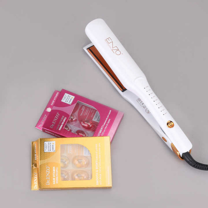 دارای دو ورق کپسول برای موهای آسیب دیده خاصیت صاف کننده مو مخصوص کراتینه مو جنس صفحه سرامیکی مدت زمان گرم شدن 30 ثانیه قابلیت تنظیم دما دارد ( 9 حالت) بیشینه دما 1280 درجه فار نهایت قفل صفحه دارد