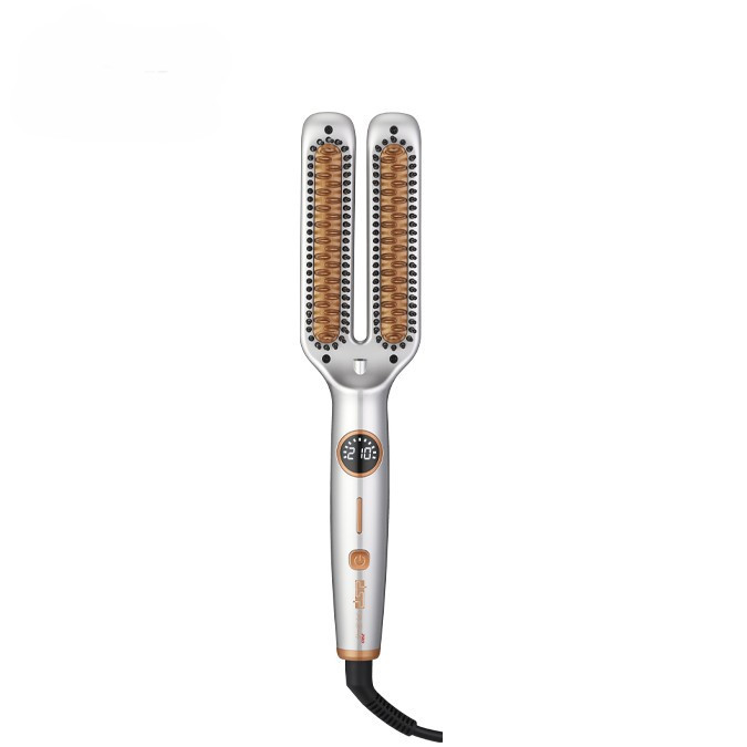 قدرت: ۶۵ وات دکمه روشن/خاموش نمایشگر LED ۵ تنظیم دما: ۱۳۰-۱۵۰-۱۷۰-۱۹۰-۲۱۰ تا بالاترین دما در ۱۴۰ درجه سانتیگراد گرمایش سریع PTC شانه آلومینیومی با روکش سرامیکی خاموش شدن خودکار پس از ۱ ساعت دندانههای شانه: ۱۰۰ * ۱۴ * ۱۷ میلیمتر