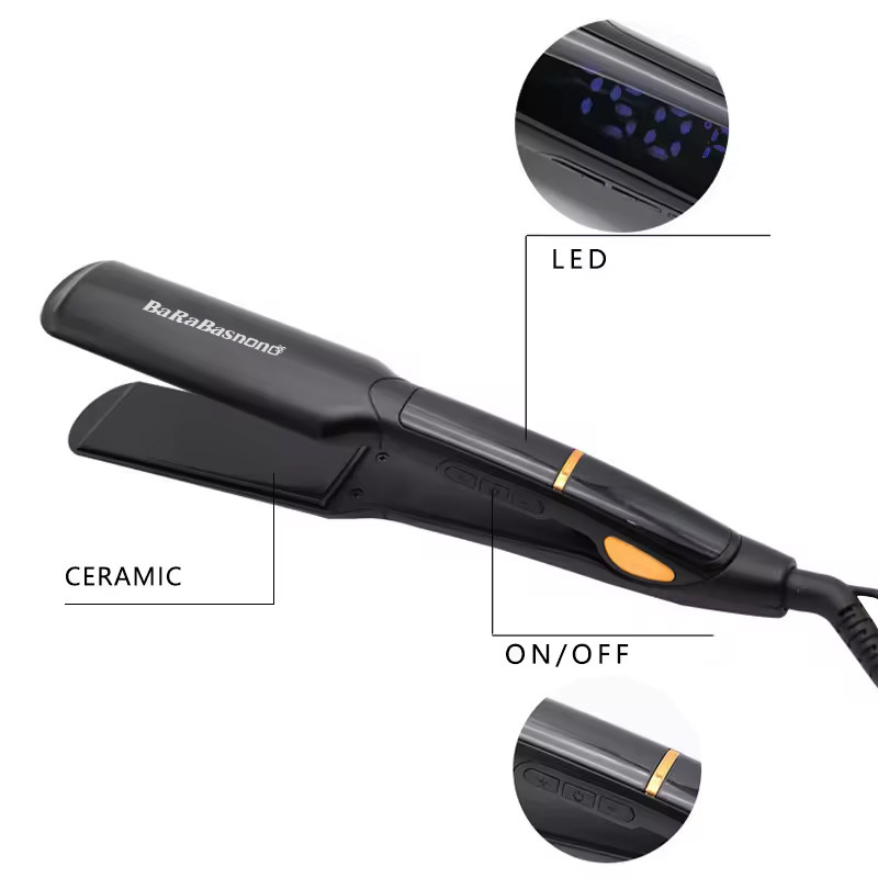 دارای صفحه پهن - سیستم قفل دما - قابلیت تنظیم دما از 450 تا 980 درجه فارنهایت - جنس صفحه ها از آلومینیوم با روکش سرامیک - مجهز به صفحه نمایشگر LCD