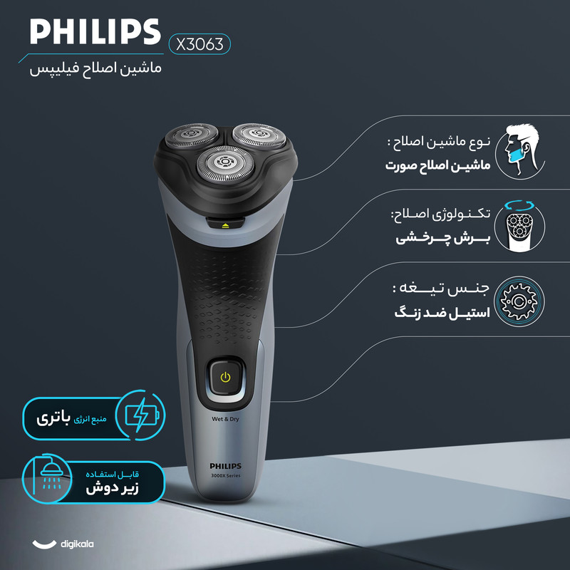 1 ساعت شارژ 45 دقیقه استفاده - USB شارژر - محافظ تیغه - ضد اب - قابل استفاده ب صورت تر و خشک ( کف٫ژل یا فوم ریش) - تیغه های استیل فوق پیشرفته - سری 3 بعدی - 5 دقیقه شارژ سریع - دارای خط زن - دارای تکنولوژی Anti Corrosion