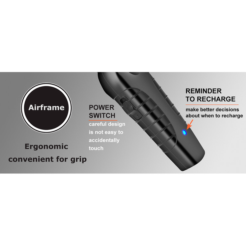 دارای تیغه های کربن استیل، بدنه ABS، دارای چراغ ال ای دی برای نمایش شارژ دستگاه، طراحی آرگونومیک، اصلاح تمیز و نزدیک به صفر