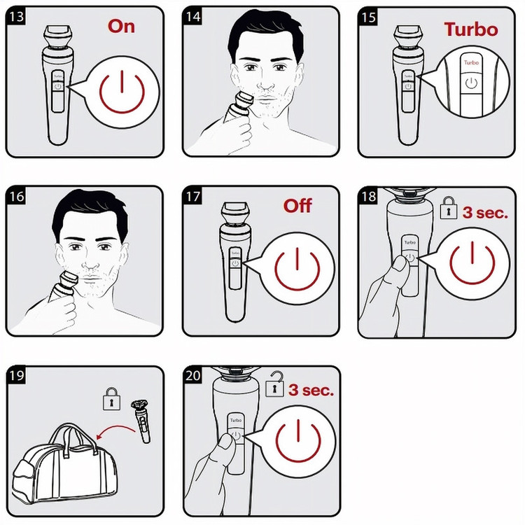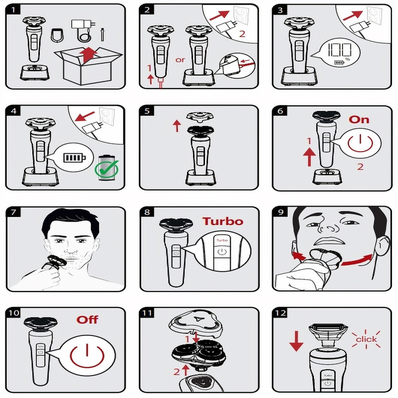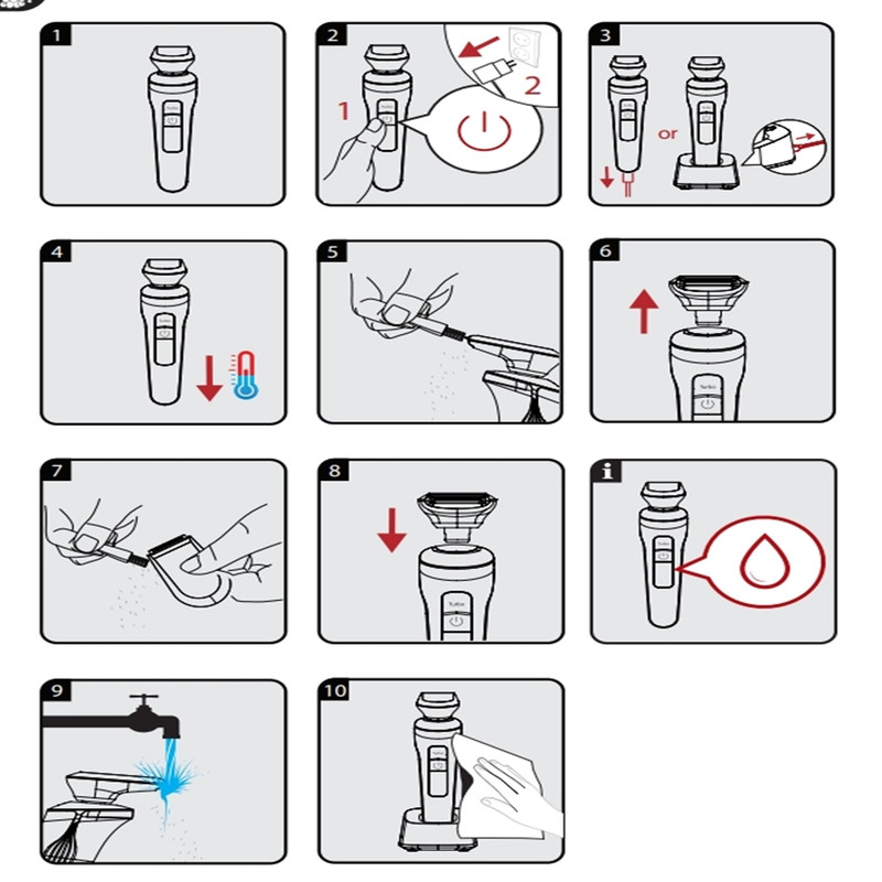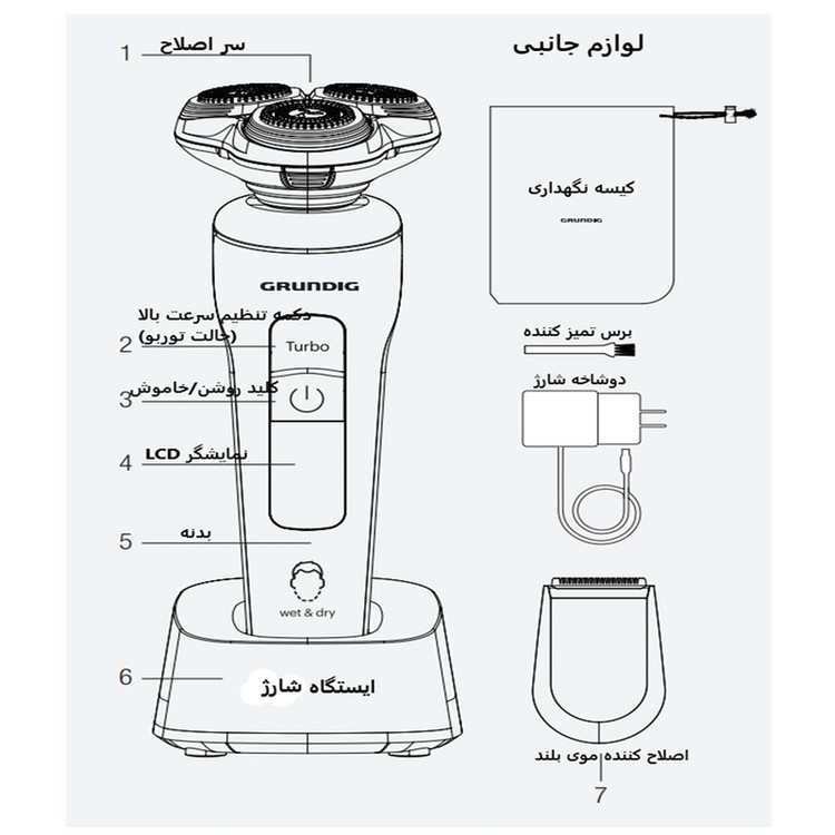 نمایشگر میزان شارژ , نمایش وضعیت باتری , قابلیت اصلاح با شماره صفر , تیغههای خودتیزشونده , طراحی ارگونومیک , قفل ایمنی , استفاده به صورت خشک و مرطوب , امکان شارژ شدن سریع , مقاوم در برابر آب , تیغههای ضد التهاب , قابلیت تنظیم سرعت