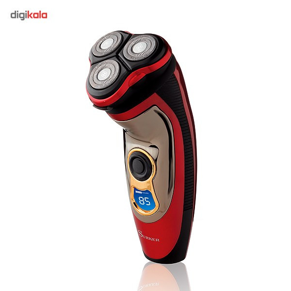 ماشین اصلاح «سورکر» (Surker) مدل «SK-6607» دارای سه تیغهی چرخشی و صفحهنمایش LCD بوده و سر آن قابل شستشو است. این ماشین اصلاح دارای تیغههایی از جنس تیتانیوم و ضدزنگ است که این تیغهها روی سر ماشین به شکل شناور قرار دارند. قابلیت انعطاف تیغهها باعث میشود تیغهها همواره در نزدیکترین موقعیت به پوست قرار داشته باشند و با انحناهای صورت هماهنگ شوند. بنابراین اصلاحی سریعتر و راحتتر را فراهم میآورند. با فشردن دکمهی زیر سری، تیغهها آزاد شده و میتوان بهراحتی آنها را زیر شیر آب گرفت و شست. با روشن کردن ماشین اصلاح، صفحهنمایش LCD آن هم با رنگ آبی روشن میشود و میزان باتری باقیمانده و دقایقی که میتوان از دستگاه استفاده کرد را نمایش میدهد. برای اصلاح خط ریش و گردن و مرتب کردن ریش و سبیل یک خط زن در پشت ماشین تعبیه شده است که به شکل فنری بیرون میآید. SK-6607 مجهز به باتری قابل شارژی است که با 8 ساعت شارژ کردن، معادل 40 دقیقه شارژدهی دارد. هنگامی که شارژ دستگاه تنها برای 5 دقیقه کار کردن با آن کافی باشد، صفحهنمایش شروع به چشمکزدن میکند و علامت شارژ روی صفحه ظاهر میشود. هنگام اتصال آداپتور شارژ به دستگاه، صفحهنمایش روشن میماند و وضعیت باتری را نمایش میدهد. ماشین اصلاح طراحی ارگونومیکی دارد و در دو طرف آن لاستیکهای ضد لغزشی کار گذاشته شده که در دست گرفتن و استفاده از آن را راحتتر میکند. برای نگهداری بهتر از ماشین اصلاح، پوشش محافظ تیغهها و کیف خورجینی نیز همراه آن ارائه شده است. به طور خلاصه Surker SK-6607 از نوع چرخشی بوده و دارای صفحهنمایش LCD، باتری قابل شارژ، سر قابل شستشو، طراحی ارگونومیک، پوشش محافظ تیغه و کیف نگهداری است.