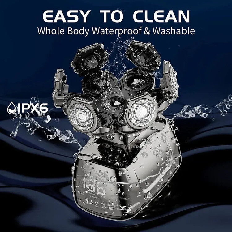 قابلیتها: ضد آب , طراحی ارگونومیک , استفاده به صورت خشک و مرطوب , امکان شارژ شدن سریع , قابلیت اصلاح با شماره صفر , مقاوم در برابر آب , نمایشگر میزان شارژ
