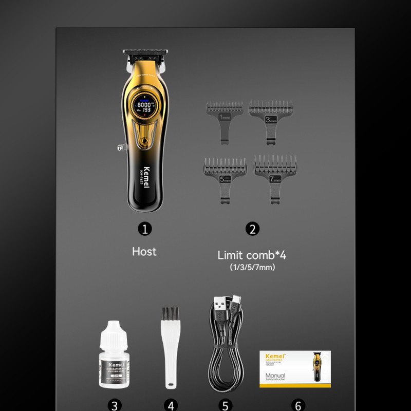 4 شانه در سایزهای 1، 3، 5 ، 7 میلیمتر - روغن مخصوص روانکننده - برس تمیزکننده - کابل USB
