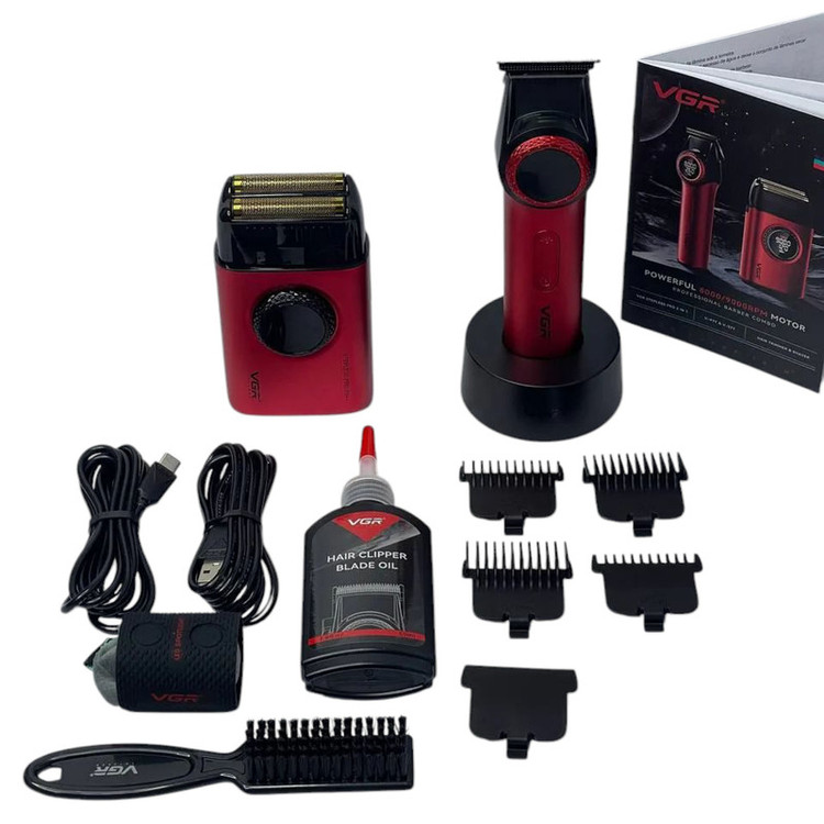 استند شارژ(برای خط زن) - 2 عدد کابل تایپ C - چهار عدد شانه اصلاح - کیف نگهداری - برس - روغن- محافظ تیغه