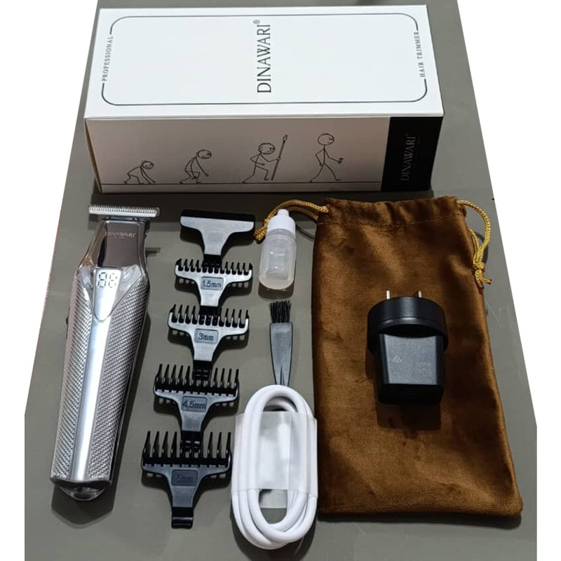 آداپتور، کابل شارژ، روغن روان کننده، شانه راهنما، محفظ پلاستیکی تیغه، کیف مخملی