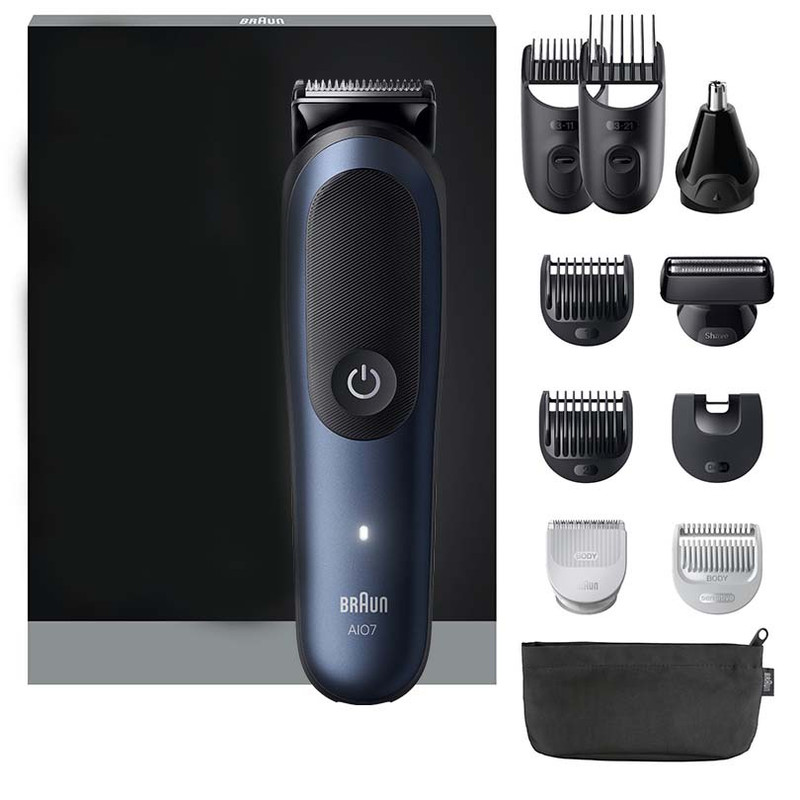 آداپتور شارژ, برس تمیز کننده, سری اصلاح فویلی پهن, سری مخصوص بدن, سری موزن گوش و بینی, شانه کشویی قابل تنظیم (13 تا 21 میلیمتر), شانه کشویی قابل تنظیم برای ریش (3 تا 11 میلیمتر), شانه مخصوص اصلاح جزئیات, شانه مخصوص اصلاح نواحی حساس بدن, شانههای ثابت با طولهای 1 و 2 میلیمتر, کیف نگهداری است