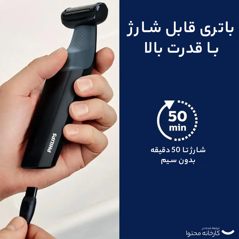 امکان اصلاح و تراشیدن مو های تمام بدندارای چراغ نشانگر وضعیت شارژ باتری-مدت زمان شارژ 480 دقیقه - مدت زمان استفاده بعد از شارژ 50 دقیقه